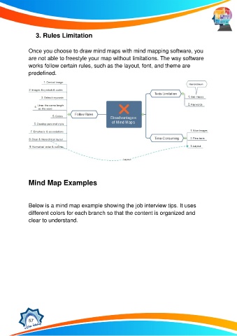 Below is a mind map example showing the job interview tips. It uses