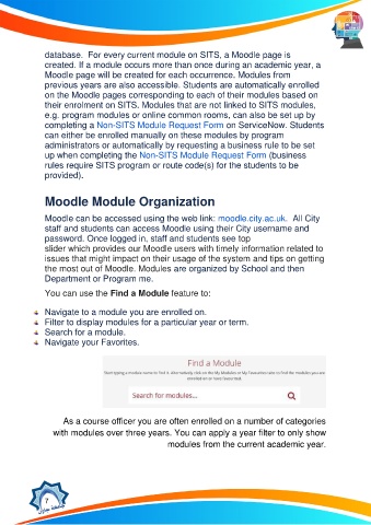 database. For every current module on SITS, a Moodle page is
