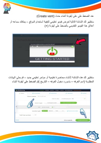 ستظهر لن هذه الشاشة لأنشاء محاضرة تعلَمَة أو مؤتمر تعلَمٍ جدَد – لم بملئ البَانات