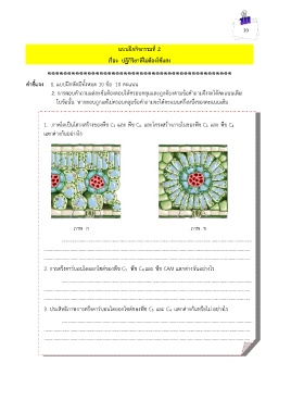 1. ภาพใดเป็นโครงสร้างของพืช C3 และ พืช C4 และโครงสร้างภายในของพืช C3 และ พืช C4