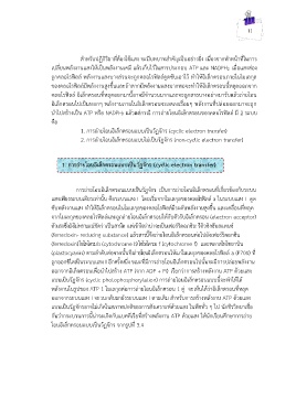 ออกจากระบบแสง I จะวนกลับมายังระบบแสง I ตามเดิม ส าหรับการสร้างพลังงาน ATP ด้วยแสง