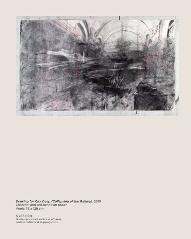Drawing for City Deep (Collapsing of the Gallery), 2019 Charcoal and red pencil on paper Work: 75 x 128 cm $ 285 000 Quoted prices are exclusive of taxes, custom duties and shipping costs