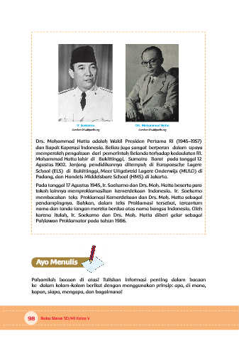 membacakan teks Proklamasi Kemerdekaan dan Drs. Moh. Hatta sebagai