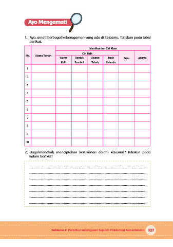 1. Ayo, amati berbagai keberagaman yang ada di kelasmu. Tuliskan pada tabel