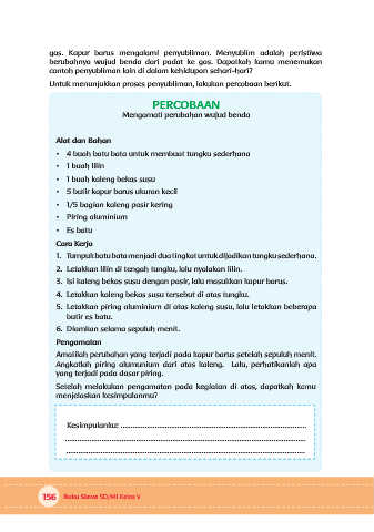 gas. Kapur barus mengalami penyubliman. Menyublim adalah peristiwa