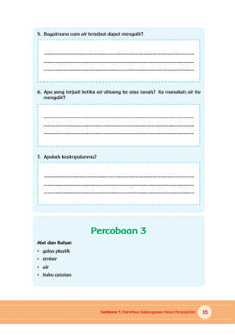 6. Apa yang terjadi ketika air dituang ke atas tanah? Ke manakah air itu