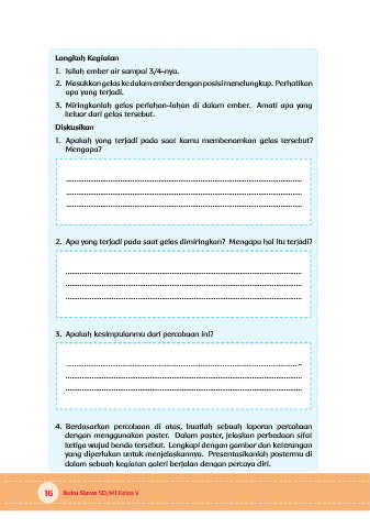 3. Miringkanlah gelas perlahan-lahan di dalam ember. Amati apa yang