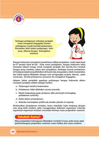 (perkembangan) pergerakan nasional, masa radikal, dan masa moderat.