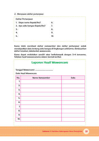 Tuliskan hasil wawancaramu dalam bentuk berikut.