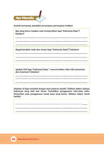 Jelaskan isi lagu tersebut dengan kata-katamu sendiri. Tuliskan dalam bahasa