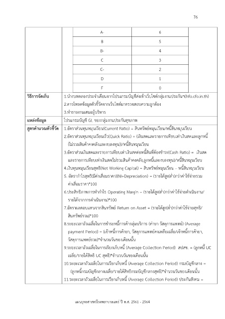 สูตรค านวณตัวชี้วัด 1.อัตราส่วนทุนหมุนเวียน(Current Ratio) = สินทรัพย์หมุนเวียน/หนี้สินหมุนเวียน
