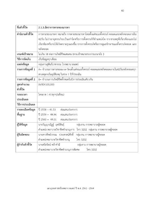 ผู้ก ากับตัวชี้วัด นางสรัลรัตน์ หล้าค ามี กลุ่มงาน การพยาบาลผู้คลอด