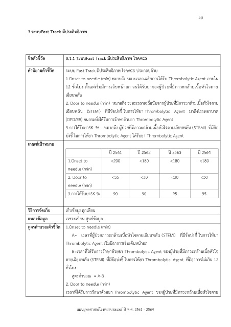 ชื่อตัวชี้วัด 3.1.1 ระบบFast Track มีประสิทธิภาพ โรคACS