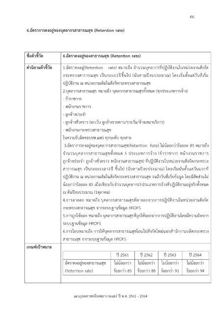 ชื่อตัวชี้วัด 6.อัตราคงอยู่ของสาธารณสุข (Retention rate)