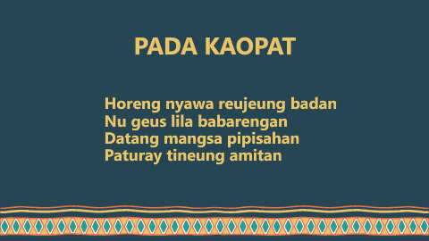 PADA KAOPAT Horeng nyawa reujeung badan Nu geus lila babarengan Datang mangsa pipisahan Paturay tineung amitan