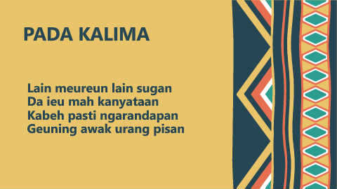 PADA KALIMA Lain meureun lain sugan Da ieu mah kanyataan Kabeh pasti ngarandapan Geuning awak urang pisan