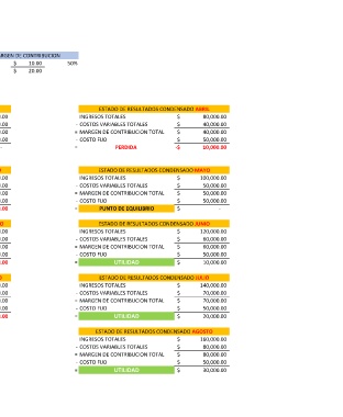 = MARGEN DE CONTRIBUCION TOTAL $ 10,000.00 = MARGEN DE CONTRIBUCION TOTAL $ 50,000.00