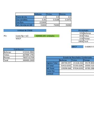 PE= Costo fijo + UD 369400.195 Unidades 45% Tiritos