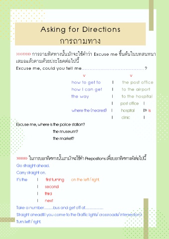 >>>>>>>>> ในการบอกทิศทางนั้นเรามักจะใชคํา Prepositions เพื่อบอกทิศทางดังตอไปนี้
