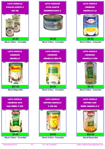 Distribuidora P.R.O. 101 Tel.: 0351-458-8927 E-Mail: distribuidorapro@hotmail.com