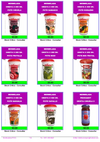 Distribuidora P.R.O. 112 Tel.: 0351-458-8927 E-Mail: distribuidorapro@hotmail.com