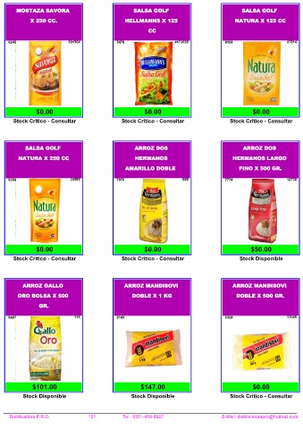 Distribuidora P.R.O. 121 Tel.: 0351-458-8927 E-Mail: distribuidorapro@hotmail.com