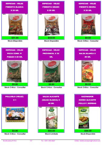 Distribuidora P.R.O. 127 Tel.: 0351-458-8927 E-Mail: distribuidorapro@hotmail.com