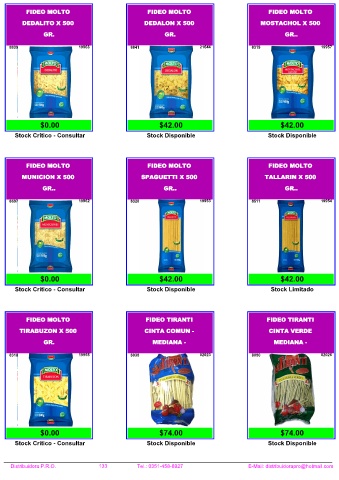 Distribuidora P.R.O. 133 Tel.: 0351-458-8927 E-Mail: distribuidorapro@hotmail.com