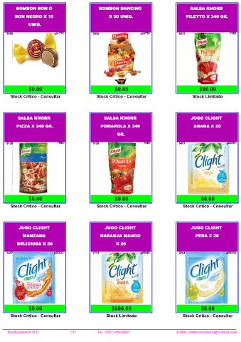 Distribuidora P.R.O. 137 Tel.: 0351-458-8927 E-Mail: distribuidorapro@hotmail.com