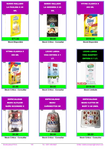 Distribuidora P.R.O. 143 Tel.: 0351-458-8927 E-Mail: distribuidorapro@hotmail.com
