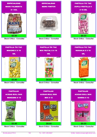 Distribuidora P.R.O. 144 Tel.: 0351-458-8927 E-Mail: distribuidorapro@hotmail.com