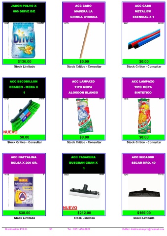 Distribuidora P.R.O.           38           Tel.: 0351-458-8927                    E-Mail: distribuidorapro@hotmail.com