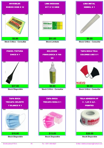 Distribuidora P.R.O. 45 Tel.: 0351-458-8927 E-Mail: distribuidorapro@hotmail.com