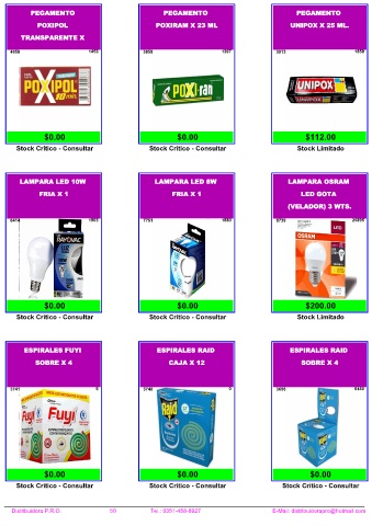 Distribuidora P.R.O. 50 Tel.: 0351-458-8927 E-Mail: distribuidorapro@hotmail.com