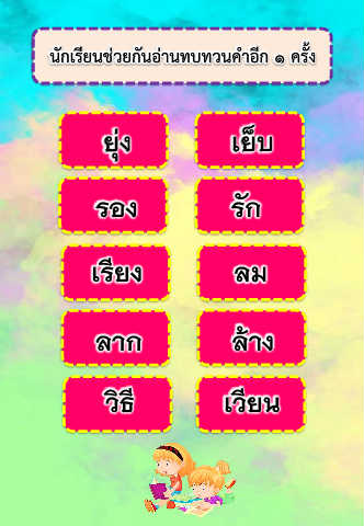 นักเรียนช่วยกันอ่านทบทวนค าอีก ๑ ครั้ง ยุ่ง เย็บ รอง รัก เรียง ลม ลาก ล้าง วิธี เวียน