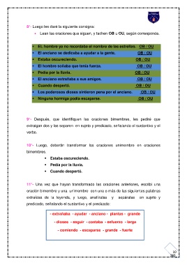 9°- Después, que identifiquen las oraciones bimembres, les pediré que