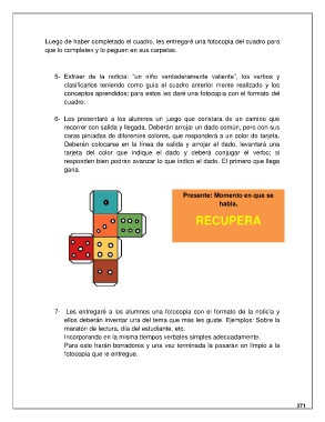 tarjeta del color que indique el dado y deberá conjugar el verbo; si