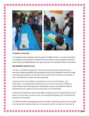 En el segundo stand el docente leerá el cuento “CIUDAD CELULA”, a su vez les presentara