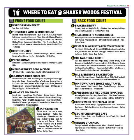 WHERE TO EAT @ SHAKER WOODS FESTIVAL