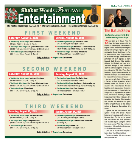 ❤ The Meeting House Stage: The Gatlin Show (11 a.m.- Noon) (1- 2 p.m.) (3- 4 p.m.)