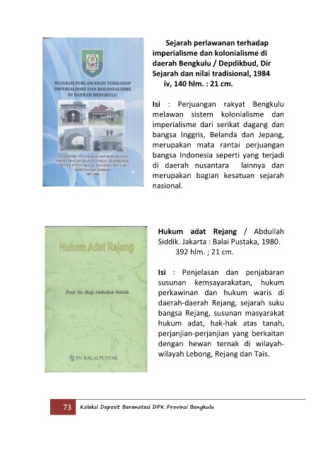 73 Koleksi Deposit Beranotasi DPK Provinsi Bengkulu