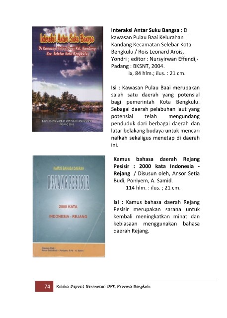 74 Koleksi Deposit Beranotasi DPK Provinsi Bengkulu