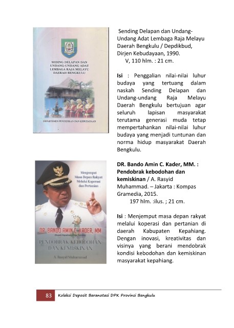 83 Koleksi Deposit Beranotasi DPK Provinsi Bengkulu