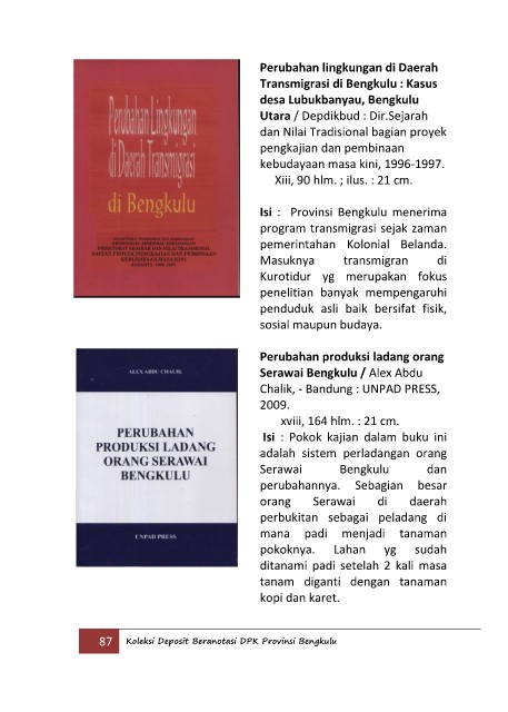 87 Koleksi Deposit Beranotasi DPK Provinsi Bengkulu