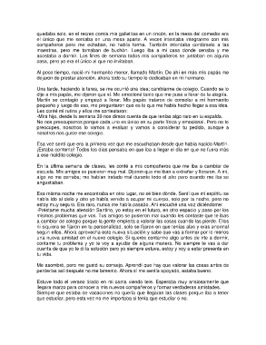 escuela. Mis amigos se pusieron muy mal. Dijeron que me iban a extrañar y lloraron. A mí,