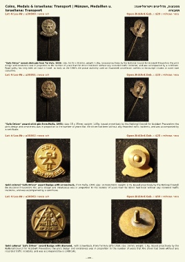 Gold colored "Safe Driver" award badge with screw-back, from Haifa, 1956; size: 14.5x14.5mm; weight: 2.7g. Issued proactively by the National Council