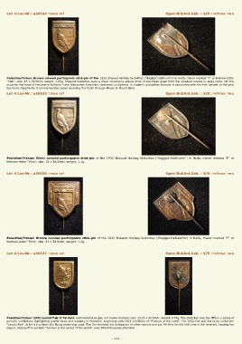 Palestine/Yishuv: 1932 Levant Fair in Tel Aviv commemorative pin; not maker-marked; size: 13.25 x 33.5mm; weight: 0.75g. The 1932 Fair was the fifth in a series of