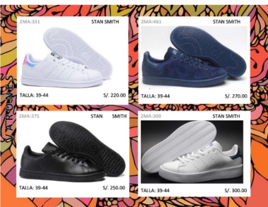 STAN SMITH STAN SMITH TALLA: 39-44 S/. 220.00 TALLA: 39-44 S/. 270.00 STAN SMITH STAN SMITH TALLA: 39-44 S/. 250.00 TALLA: 39-44 S/. 300.00