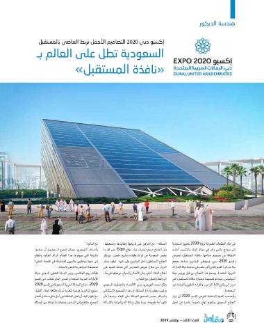 بالر ؤ�ية التي �سيوفرها هذا الجناح الرائد للعالم ،ونتطلع يخ�ص ال�سعودية من ث�راث وقيادة وتاريخ متجزر ،ويرتكز المملكة عن ت�صميم جناحها «نافذة الم�ستقبل» لمعر�ض