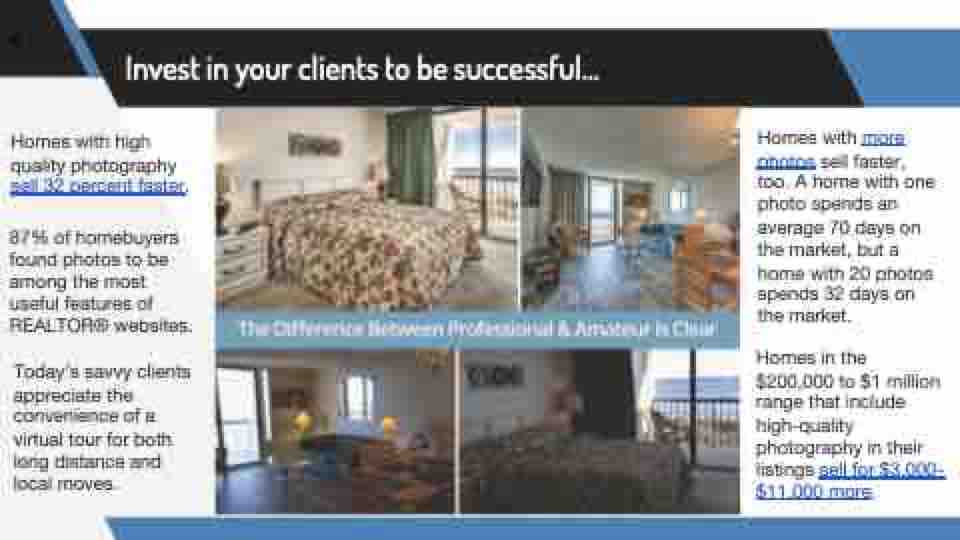 Homes in the $200,000 to $1 million range that include high-quality photography in their listings sell for $3,000- $11,000 more.